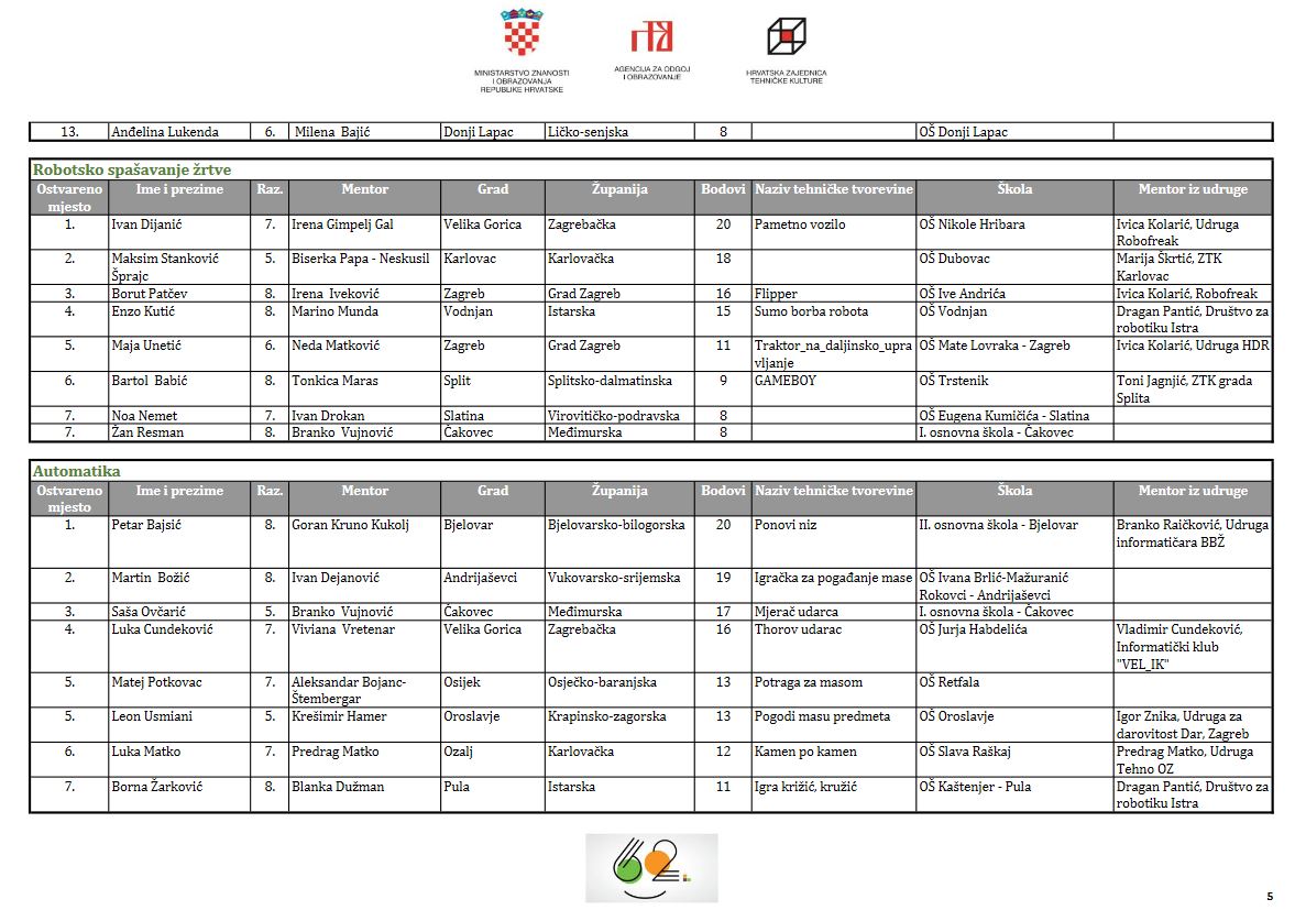 62. Državnom Natjecanju mladih tehničara iz Automatike osvojio je